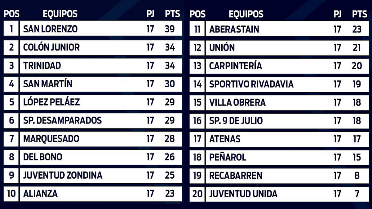 En la zona baja queda un lugar por definir. Recabarren ya perdió la categoría y el otro descenso será para Juventud Unida (28), Unión (33) o Carpintería (34). El equipo del Médano de Oro está obligado a ganar sus dos partidos y esperar que caigan sus rivales directos. El Azul de Villa Krause necesita ganar un juego para asegurar la categoría y Carpintería sólo debe sumar un punto para zafar.