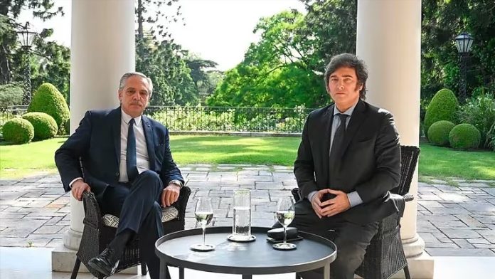 El presidente electo, Javier Milei, se reunió este martes con Alberto Fernández en la Quinta de Olivos para iniciar oficialmente la transición institucional tras el balotaje del domingo.