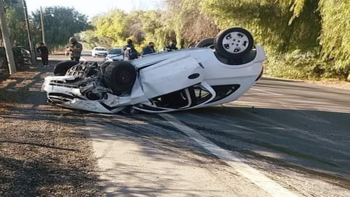 Un violento choque y vuelco se dio en Caucete. Un auto que circulaba por calle Paula Albarracín se fue de control alrededor de las 10.30 y terminó volcando pasando calle Salta antes de Caseros, en el departamento.