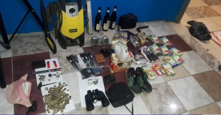 Las cosas robadas y que se pudieron recuperar son: una hidrolavadora amarilla y negra de marca Force Garden; una luz de emergencia chica y gris de marca Halux; una batidora Estilo; una cámara digital fotográfica Kodak de color gris con funda negra; un par de parlantes grises y chicos Coby; tres juegos de cuchillos con 12 unidades cada uno de mango de plástico de color negro tipo serrucho; dos juegos de cucharas de 12 unidades cada paquete marca Karol de mango de plástico de color negro; un pelapapas chino gris y un juego de 13 llaves montadas en un llavero de cuero.