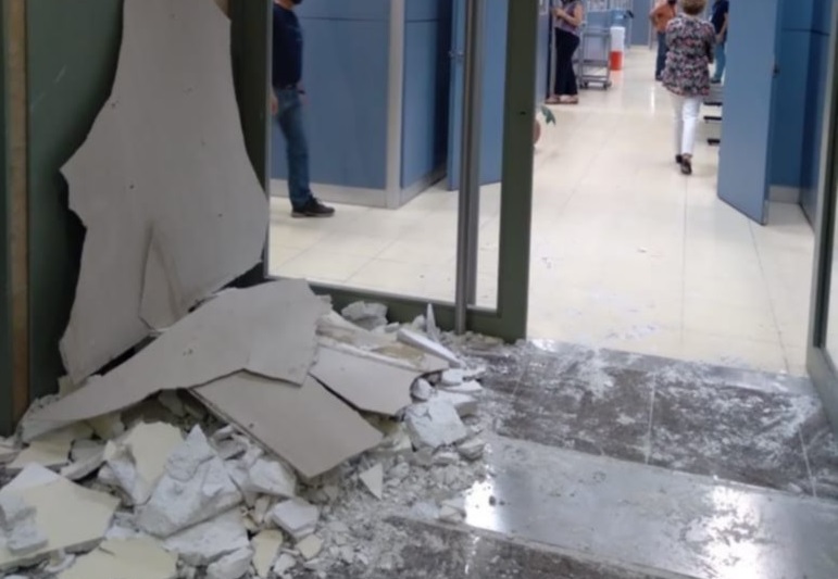 Los empleados estatales se encontraron con computadoras tiradas, pedazo de techo tirado, lámparas en el suelo y algunas grietas.