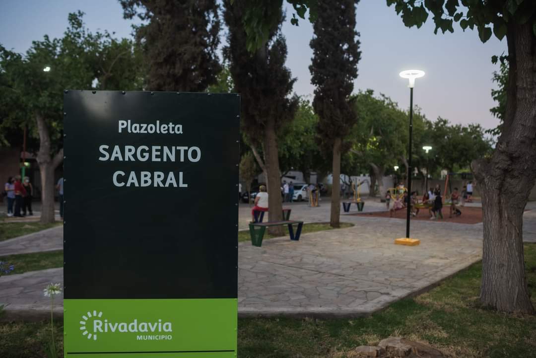 La Municipalidad de Rivadavia informa que en la tarde noche del lunes, el Sr. Intendente Fabián Martín, dejó inauguradas las obras de la plaza y nuevas luminarias Led del Bº Sargento Cabral. Acompañado por autoridades municipales y los vecinos, recorrió este espacio verde, que fue remodelado en su totalidad.
