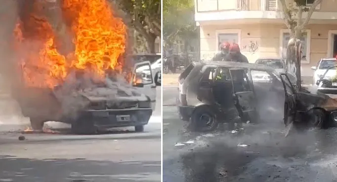El vehículo se detuvo en medio de la calzada, afortunadamente lejos de comercios y otros automóviles. Varios testigos intentaron apagar las llamas con extintores, pero el fuego avanzó rápidamente y consumió por completo el rodado en cuestión de minutos.