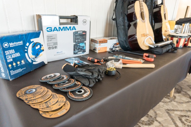 Por este motivo, el ministro Fabian Aballay, realizó la entrega de elementos clave para poder llevar adelante dos nuevos talleres de formación. Se trata de Carpintería y Música, los cuales ahora serán dictados en las Comunidades Proyecto Juan y María del Carmen.