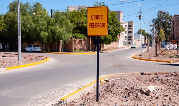 Tras las tareas de asfaltado, construcción de rampas y cordones e iluminación en Calle Pueyrredón, la Dirección de Movilidad Urbana procedió a la señalización de ochavas y colocación de carteles de prevención y restricción desde 9 de Julio hasta O’Higgins.