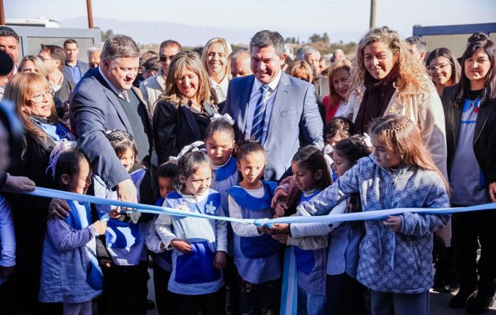 El gobernador Marcelo Orrego encabezó la inauguración del nuevo edificio de la Escuela de Nivel Inicial N° 54 Santa Rosa, ubicado en calle Enfermera Medina, en el departamento 25 de Mayo. Se trata de una obra largamente esperada por la comunidad educativa, que ahora cuenta con un espacio moderno, funcional y seguro para los primeros años de formación de niñas y niños.