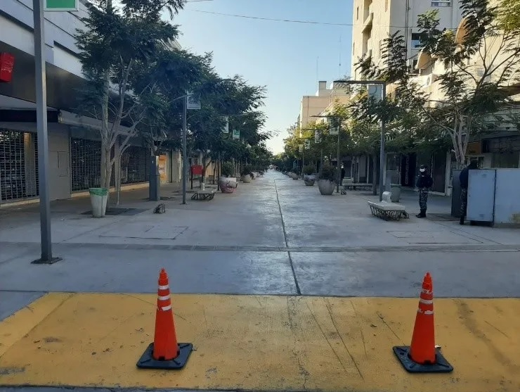 La franja permitida para realizar los desplazamientos de un punto a otro es de 6 a 18 todos los días hasta el próximo 30 de junio, inclusive. En las clásicas postales otoñales que la peatonal sanjuanina ofrece solamente había patrulleros y efectivos de la Policía de San Juan custodiando que se cumpliera a rajatabla el protocolo sanitario