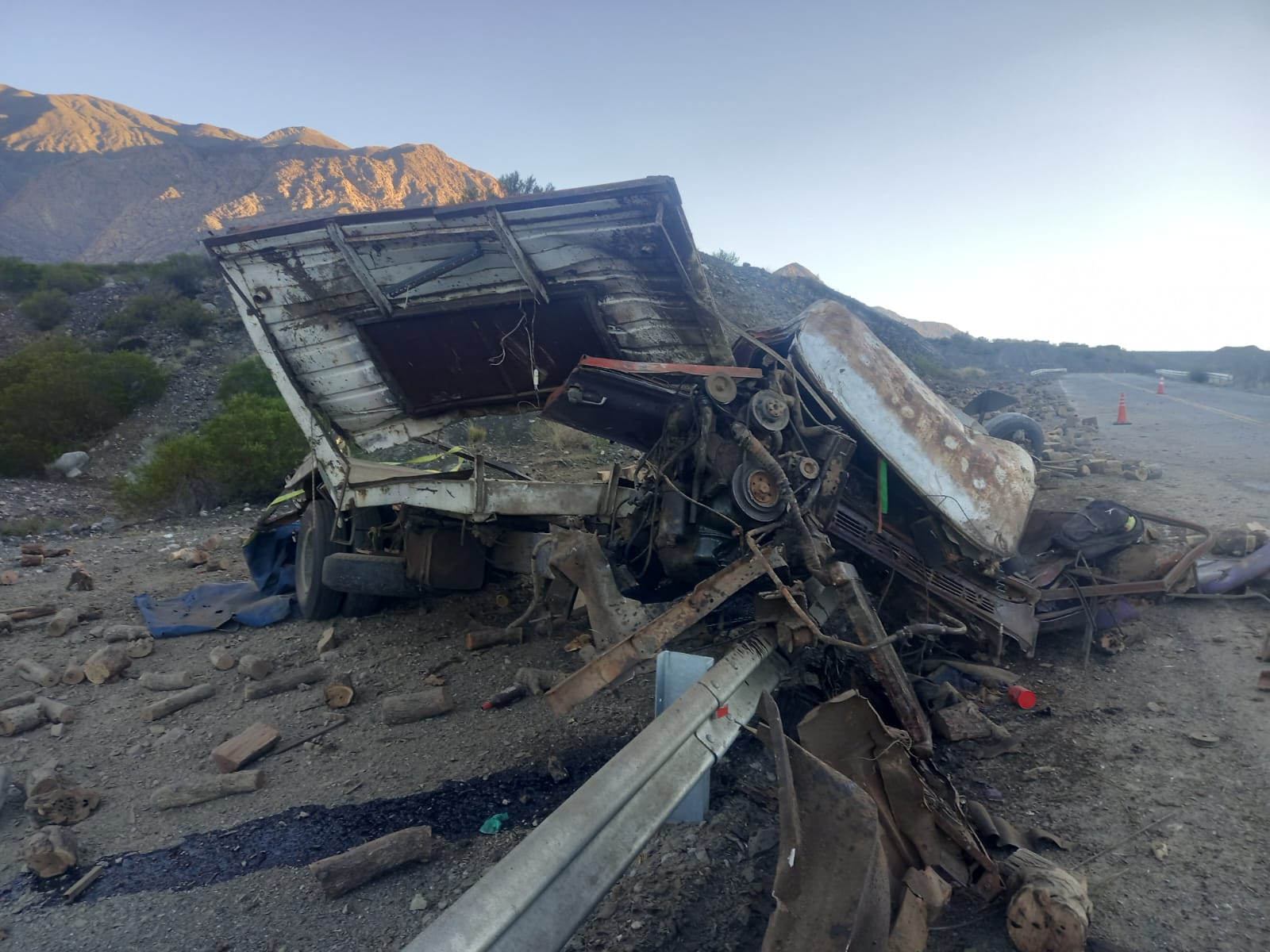 Según informaron fuentes policiales, el conductor de un camión que transportaba varias toneladas de leña perdió el control del vehículo por causas que aún se investigan. Tras ello, el rodado impactó contra el cerro y luego volcó, provocando un desenlace fatal.
